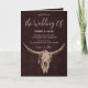 Convide seus convidados para seu dia especial com este estilo de fazenda ocidental do país, convites de casamento dobrados em forma de rodeio de fazenda marrom. Lindo fundo de textura rústica da vintage moderna para personalizar suas informações. Imagem copyright Marg Seregelyi Fotografia.