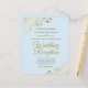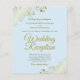 Estes convites para recepções de casamento baratos, amigáveis ao orçamento são a escolha perfeita para classe, estilo e beleza em um orçamento. Projetados para convidados para a recepção, mas não para a cerimônia, eles apresentam um fundo azul pálido, colorido, com ornamentado faux foil frils nos cantos. A tipografia inclui a escrita em ouro de rico para um estilo simples e elegante. Uma maneira maravilhosa de convidar seus amigos e família para compartilhar sua alegria em seu dia especial sem quebrar o banco.