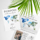 Moderno e Elegante Mapa do Mundo Convite Destino de Casamento, como passaporte. Praia com palmeiras tropicais, ilustração de aquarela