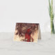 Cartão com a ilustração de Papai Noel de Arthur Rackham (1907). Um Papai Noel vestido com um roupão vermelho carrega um saco de presentes de Natal em uma floresta nevada. Elfos voam ao seu lado. Um presente alegre para o Natal!