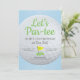 Convite de Aniversário de Golfe Par-Tee de vamos - perfeito para um Golf de Topo, Mini Golfe, Boomers, qualquer tipo de festa temática de golfe etc.! Design em azul claro e verde com grande bola de golfe e bandeira de golfe com ano de aniversário. A parte de trás do convite você pode personalizar a bola de golfe com nome e idade das pessoas de aniversário.