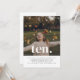 Um simples convite de 10 de aniversário com sua própria foto e as palavras 'dez' no topo.