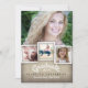 Casual e elegantemente rústico, este fundo de burlap bege e a tipografia na moda definem a palco de um adorável convite/anúncio para a graduação do país. Com espaço para uma coleção de fotos múltiplas do seu filho, esta carta é uma forma adorável de celebrar o seu formando e criar uma manutenção familiar. Todo o texto no verso pode ser facilmente personalizado para um convite de festas (como mostrado) ou para criar apenas um anúncio.