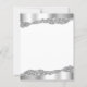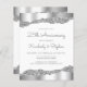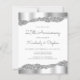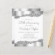 Este convite de festas de aniversário de casamento da 25 apresenta uma fina folha de papel prateado cintilante e bordas brilhantes de cima e de baixo sobre um fundo branco. As palavras "25 Aniversário" e os primeiros nomes do casal aparecem no script de escrita manual de cinzas prateadas, com o resto do texto personalizável na fonte sans serif. A mesma folha prateada e design de borda reluzente aparece no verso.