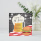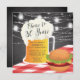 Anima-se a 30 anos de convite de churrasco de aniversário com caneca de cerveja e hambúrguer em fundo preto com luzes de jarro de pedras suspensas