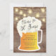 Anima-se com o convite de 30 anos de aniversário com uma caneca de cerveja em um fundo de madeira rústica com luzes de jarro de pedras suspensas