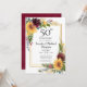 Este convite para o 50º Aniversário é perfeito para a sua festa. É uma adorável cor d'água, girassóis e rosas burros e flores silvestres espertas em uma dupla camada de ouro misturada lindamente com o tipo limpo, faça-o atordoante, moderno, mas clássico! Está coordenando a lavagem de cor d'água de burgundy e adiciona um toque extra. É muito fácil fazer esses convites selecionando Personalizar este modelo e digitando em suas informações. Num instante você pode ver como seus convites serão lindos!