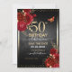 Elegante Faux gold confetti destaca na borda superior e inferior. Rosas vermelhas profundas brilhantes com sotaques florais dourados. Todo o texto é ajustável e fácil de mudar para as necessidades do seu próprio partido. design de modelo de 50 anos elegante excelente.
