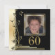 Marcha floral negra e dourada marco de 60 anos de convite. Um elegante, feminino, clássico, mas moderno, com um toque de convite de aniversário de quadrado vintage, com uma fronteira floral de ouro de cima para baixo e sua foto em um quadro de ouro. Um na moda, design perfeito para 20, 30, 40, 50, 60, 70, 80, 90 e por que não o 100º aniversário. Personalize com seu texto.