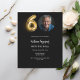 Um convite fotográfico moderno e minimalista para uma 60ª festa de aniversário. Um clássico fundo negro. Personalize e adicione uma foto e detalhes da festa. 1 folha = 1 convite impresso de borda a borda.
