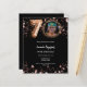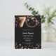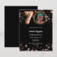 Um convite para fotos moderno e na moda para uma festa de aniversário 70. Um fundo preto clássico, decorado com estrelas douradas rosa. Personalize e adicione os detalhes da sua festa. 1 folha = 1 convite impresso de borda a borda.