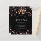 Um fundo preto clássico, decorado com estrelas douradas rosa. Personalize e adicione um nome e detalhes da parte. O número é escrito com um script de estilo de balão. 1 folha = 1 convite impresso de borda a borda.