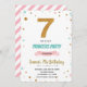 Convite para 7 de aniversário de confetti Glitter