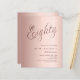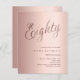 Um convite moderno e na moda para uma festa de aniversário 80. fundo de gradiente rosa dourado e a palavra Oitenta escrita com letras elegantes e grandes em rosa dourado escuro. Personalize e adicione um nome e detalhes da parte. 1 folha = 1 convite impresso de borda a borda.