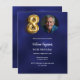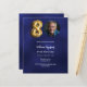 Um convite fotográfico moderno e minimalista para uma festa de aniversário 80. Um fundo azul marinho incolor. Personalize e adicione uma foto e detalhes da festa. 1 folha = 1 convite impresso de borda a borda.
