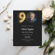 Um convite fotográfico moderno e minimalista para uma festa de aniversário 90. Um clássico fundo negro. Personalize e adicione uma foto e detalhes da festa. 1 folha = 1 convite impresso de borda a borda.