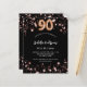 Um fundo preto clássico, decorado com estrelas douradas rosa. Personalize e adicione um nome e detalhes da parte. O número é escrito com um script de estilo de balão. 1 folha = 1 convite impresso de borda a borda.