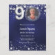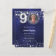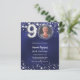 Um convite para fotos moderno e na moda para uma festa de aniversário 90. Um fundo azul marinho, decorado com estrelas. A cor azul é irregular. Personalize e adicione sua foto e detalhes da festa. 1 folha = 1 convite impresso de borda a borda.