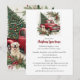 Este convite de festa de Natal de casa aberta apresenta uma imagem criada por IA, desenhada por Susang6. A imagem apresenta um caminhão vermelho antigo com uma árvore de Natal na carroceria. Um cão Golden Retriever e folhagens natalinas adornam a borda, emoldurados em dourado. Esta imagem festiva e orientada para a família é perfeita para uma casa aberta de Natal. O convite é um modelo, permitindo que você edite a fonte, a cor da tinta e o layout. Se você ama a imagem e gostaria de tê-la em outro produto, você pode transferi-la para um produto de sua escolha.
