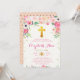 Este Convite para a Comunhão floral é enfeitado com toques de ouro e flores de aquarela que são arqueadas sobre uma cruz de ouro. Todos juntos fazem o convite perfeito para a sua bela comemoração da Comunidade!