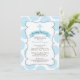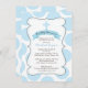 O convite para a Primeira Comunhão Bonita, com uma cruz azul, num quadro na moda, num fundo de bolinhas azul popular. Sacudir nosso convite de comunhão para encontrar uma polca azul e branca correspondente. Perfeito para uma comunhão contemporânea de bebês. Disponível em nosso compro em uma variedade de cores para um bebê ou uma menina.