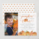 Atenção a todos os que comemoram aniversário no outono! É hora de elevar o nível da sua festa com um convite charmoso que fará seus convidados suspirarem. Apresentamos o nosso convite de aniversário temático de abóbora aquarela, completo com sua foto favorita e uma deliciosa variedade de abóboras. E se isso não for suficiente para deixá-lo animado, a frase "Nossa pequena abóbora está fazendo quatro anos!" certamente vai selar o negócio. Este convite é a maneira perfeita de celebrar o 4º aniversário do seu pequeno neste outono. Não perca a chance de adicionar um toque de magia outonal ao seu dia especial.