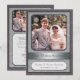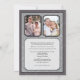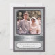 Celebre aquele casal especial com este convite de festa de aniversário de prata. A foto deles está posicionada contra um fundo com estampa damasco prateado com uma borda cinza escuro. (Certifique-se de substituir por uma foto grande e de alta resolução para esta imagem da frente). Os nomes deles e a data do casamento (ou qualquer outro texto) estão destacados na placa abaixo. Em seguida, mostre-os como eram na época e como são agora no verso com todas as informações do evento abaixo. Lembranças e selos combinando disponíveis.
