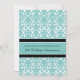 Convite de cartão de festa de aniversário de casamento de 25 anos em elegante padrão damasco floral moderno azul-turquesa, preto e branco, delicado e contemporâneo. Personalizável com os detalhes da sua festa.