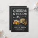 Marcar 80 anos merece uma celebração única e nossos convites rústicos de festa de aniversário de 80 anos para adultos são exatamente isso! Com um fundo de quadro-negro vintage, motivos de aquarela de cervejas, um pretzel e um barril de cerveja. O lema? 'Brindes e cervejas por 80 anos'. Personalize instantaneamente com nosso modelo de festa fácil de usar.