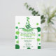 Um convite de aniversário com um esquema de cores verdes. Ilustração de uma festa com bolinhas verdes e borda no topo. Personalize com o número nele. O Bolinhas rodeia texto verde personalizável. Bolinhas ao contrário.