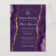 Lindo ágar-ágata roxo e dourado decora a lateral deste convite de cartão postal para cerimônia de Bat Mitzvah e festa. O nome da sua filha está escrito em linda caligrafia abaixo da Estrela de Davi. Um design moderno e atual para uma menina judia sendo chamada ao Torá.