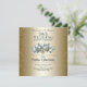 Este elegante convite de aniversário de 50 anos de casamento é projetado com um buquê de tulipas brancas, aglomerados de folhagens e destaques em dourado, em um fundo dourado. O texto da frente inclui os nomes do casal, data do evento, horário, local e endereço. O texto do verso inclui os detalhes de RSVP em um fundo dourado, com sotaque de tulipas brancas. Para personalizar, basta inserir seus detalhes em nosso modelo fácil, substituindo o texto de exemplo. Certifique-se de ver as peças adicionais que combinam com esta Coleção de Aniversário de 50 anos de Casamento Dourado.