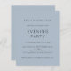 Simples Festa de Noite Azul Convidada. Um alternativo de 4,5 pol x 5,6 pol com preço inferior. Disponível em um STOCK DE CARTÃO SEMI GLOSS 110 lb, que é a opção padrão (recomendada para convites), OU um STOCK DE PAPEL THINNER SATIN FINISH 80 lb (ideal para gabinetes). Os envelopes são um extra opcional e são ligeiramente maiores que o tamanho da placa. Fácil de personalizar o texto para seus detalhes e alterar as cores da tipografia e do fundo em cada lado, se você quiser, pode ser alterado para qualquer opção ou sua escolha por meio da opção personalizar mais.