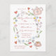 Encantado com uma paleta alegre, este convite dá um tom alegre para sua festa de chá. Cada elemento é cuidadosamente ilustrado, dando ao convite uma sensação única, artística e pessoal. Ele apresenta uma coroa floral estilo rabisco desenhado pela mão, um belo bule rosa e um chá rosa combinando, arcos e corações Coquetes. Adicione facilmente seus próprios detalhes e, se quiser, altere o estilo da fonte, a cor, o tamanho e a posição para torná-la perfeita.