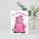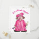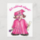 Basta personalizar com as informações do seu evento! O design do convite estilo cartão-postal apresenta uma ilustração original feita à mão de uma menina com um gorro e uma toga de formatura cor-de-rosa, segurando um diploma. Também está disponível uma versão azul.