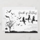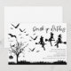 Junte-se a nós para uma noite incrivelmente divertida na nossa festa de Halloween para adultos! O nosso tema é "Beba, Bruxas!" e o convite define o tom perfeito com silhuetas pretas de uma árvore antiga, abóbora, aranha e morcegos voando. Cuidado com as três bruxas nas suas vassouras voadoras! O modelo de convite moderno é definido contra um fundo branco limpo, tornando-o o convite perfeito para uma noite das meninas neste Halloween. Não perca a diversão!