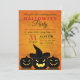 Convite para o Festa de Halloween de Pumpkins, com a ilustração de Halloween Pumpkin sobre um fundo laranja.