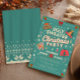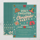 Defina o tom para uma noite de diversão festiva com este convite de festa de Natal de Suéter Feio em tons de azul turquesa retrô. O design apresenta um fundo de tricô aconchegante, canudos de açúcar alegres, flocos de neve divertidos e suéteres feios coloridos que capturam o caos alegre das festas de fim de ano. A tipografia vintage em negrito destaca os detalhes do seu evento, mantendo o clima leve e alegre.