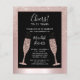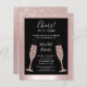Num fundo de folha metálica cor-de-rosa-pincelada, o nosso convite de festas aniversário de 21 anos apresenta um design brilhante com brilho feminino, com óculos de champanhe borbulhantes prontos para brindar a honra da aniversário de 21 anos. Em um quadro preto com uma borda rosa dourada, você encontrará um texto de exemplo que pode ser facilmente revisado no modelo de personalização.