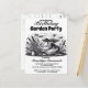 Mergulhe na diversão com nosso convite de festa de jardim preto e branco brilhante! Junte-se a nós para um momento incrível enquanto celebramos em estilo floral. Prepare-se para: Rosas cintilantes, Verduras emocionais, 🎂 Guloseimas deliciosas de aniversário, 🧜♀️ Aventuras mágicas ao ar livre. Venha com suas melhores roupas de fazendeiro e vamos criar um dia divertido juntos! Não perca essa celebração! Uma ilustração em preto e branco de uma mulher jardinando, cercada por uma variedade de flores e plantas.