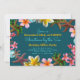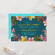 Modelo de convite de festas de férias com tema de praia. Azul escuro com aqua e linhas douradas de texto delimitadas por estrelas do mar e flores de plumeria, este convite é fácil de personalizar para o seu evento. Feito como um convite para festas de escritório, com lugar para o tema da festa. O texto de exemplo é "Natal pelo Mar" ou pode ser "Holiday Luau", ou qualquer texto que ajustado o espaço. Flores de plumeria cor-de-rosa e amarela misturam-se com estrelas-do-mar castanhas, ornamentos de árvores e folhas sagradas nesta design sazonal injusta. O reverso é azul aqua sólido. Escolha sem envelopes se quiser descartá-los no trabalho.