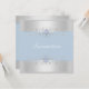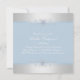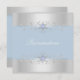 O Elegante Quinceañera Invitation apresenta uma borda prateada com floco de neve em um fundo azul macio. Observe que as joias são uma imagem impressa.