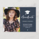 Tendy chic clássico de marinho escuro azul e branco script de tipografia e graduação que fazer um cartão-postal de anúncio de convite de festas na moda. ++++++++ Fácil de personalizar com a sua fotografia, detalhes e monograma / iniciais de nome em ambos os lados! ++++++++++++++++++++++++++ Se você precisa de uma cor específica, por favor, mite o designer pelo botão abaixo.