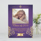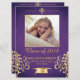 Adicione sua foto favorita dos formandos a este convite para festas de formatura roxo e ouro.