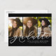 Comemore seu formando e convide os convidados com este anúncio horizontal de graduação em três fotos e o cartão-postal de convite que apresenta um formando moderno e moderno de roteiro de caligrafia na frente e um retorno personalizável para os detalhes do seu partido.