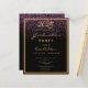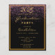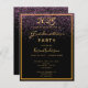 Um convite moderno e na moda para uma festa de formatura de 2025. Glamorosa com elegante e moderno fundo negro e chuva de confete cor roxa. Com uma falsa armação de ouro. Modelo para detalhes de nome e festa. O texto Graduação e o nome são escritos com um script de estilo manuscrito moderno. Ouros. Traseira: cor preta do fundo, confetti