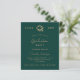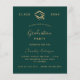 Um convite moderno e elegante para a festa de formatura. Um fundo verde, texto de ouro. Personalize e adicione um nome, ano e detalhes.