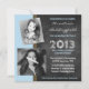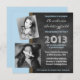 Carregue duas de suas fotos recortadas favoritas de seu filho ou filha graduado para celebrar um anúncio especial de formatura. Mostradas com proporções de aspecto ligeiramente diferentes e efeito inclinado - suas fotos ficarão no topo, ajustando o tamanho para o naipe. Se precisar de ajuda, pode entrar em contato comigo pela loja. Este design com parede azul e cor de giz parece excelente com fotografias a preto e branco ou a cores. Com este design, o vosso formando toma o palco central como deveria, e com razão, numa ocasião tão importante. O convite totalmente personalizável do lado do solteiro tem espaços para o nome do formando e para a escola, ano/classe de detalhes do formando e a hora/data/local da cerimônia de formando, tudo na frente. O verso tem cor azul clara para coincidir.