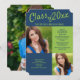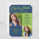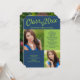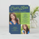 Convite para festa de formatura de fotos azul e verde limão. Adicione duas fotos à frente e uma às costas.
