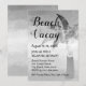 Este convite personalizado para a praia de fuga apresenta o fundo de areia e praia do mar em ambos os lados, com detalhes da festa, incluindo o título da festa, a data, a localização, o RSVP e mais informações. Disponível para download instantâneo e impressão.